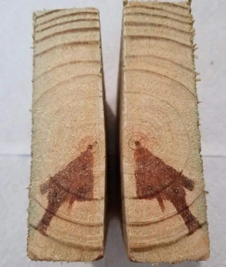 10. ภายในเนื้อไม้สนอันนี้มีลูกศรชี้ไปที่จุดที่เคยเป็นศูนย์กลางของลำต้น