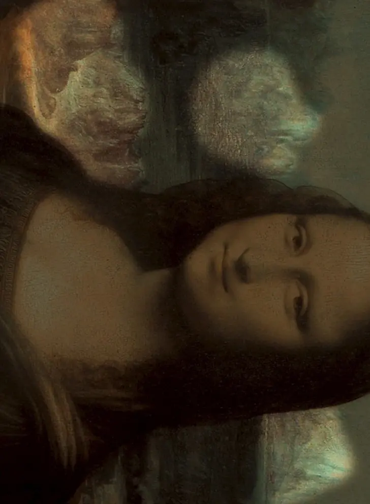 13. ศิลปินได้ค้นพบภาพทรงกะโหลกของสิงโต เอป และควาย หลังจากหันภาพโมนาลิซ่าไปทางด้านข้าง