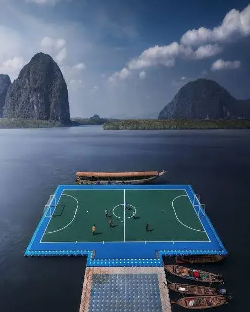 ท่ามกลางผืนน้ำสีเขียวมรกตของอ่าวพังงา ท่ามกลางภูเขาหินปูนที่ตั้งตระหง่านเป็นฉากหลัง หนึ่งในสถานที่ที่แปลกตาและเปี่ยมด้วยแรงบันดาลใจที่สุดในประเทศไทยก็ปรากฏขึ้น — สนามฟุตบอลลอยน้ำแห่งเกาะปันหยี แห่งนี้ไม่ได้เพียงเป็นสถานที่ท่องเที่ยวที่งดงาม หากยังเป็นสัญลักษณ์ของความฝัน ความมุ่งมั่น และความคิดสร้างสรรค์ของชาวบ้านเล็กๆ กลางทะเล