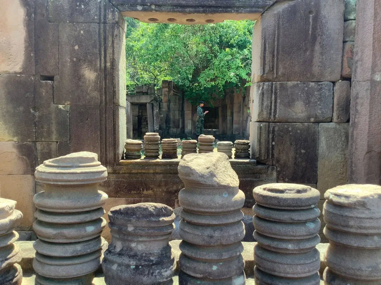 อยากบอกว่าหินสวยงามมาก ในบริเวณรอบนั้นมีก้อนหินนับร้อย มีการพังทลายลงมาเช่นกัน หินทรายอ่อนสวย บางก้อนนั้นยังคงสภาพเหมือนเดิมคือเป็นก้อนสี่เหลี่ยม สิ่งที่น่าทึ่งคือการแกะสลักในก้อนกินนี่ละที่น่าสงสัยว่า ยังไง เขามีการประกอบใส่แล้วแกะสลักที่หลังหรือว่าอย่างไร ทำไมหินทุกก้อนนั้นถูกจัดวางเป็นล็อกเดียวเลย