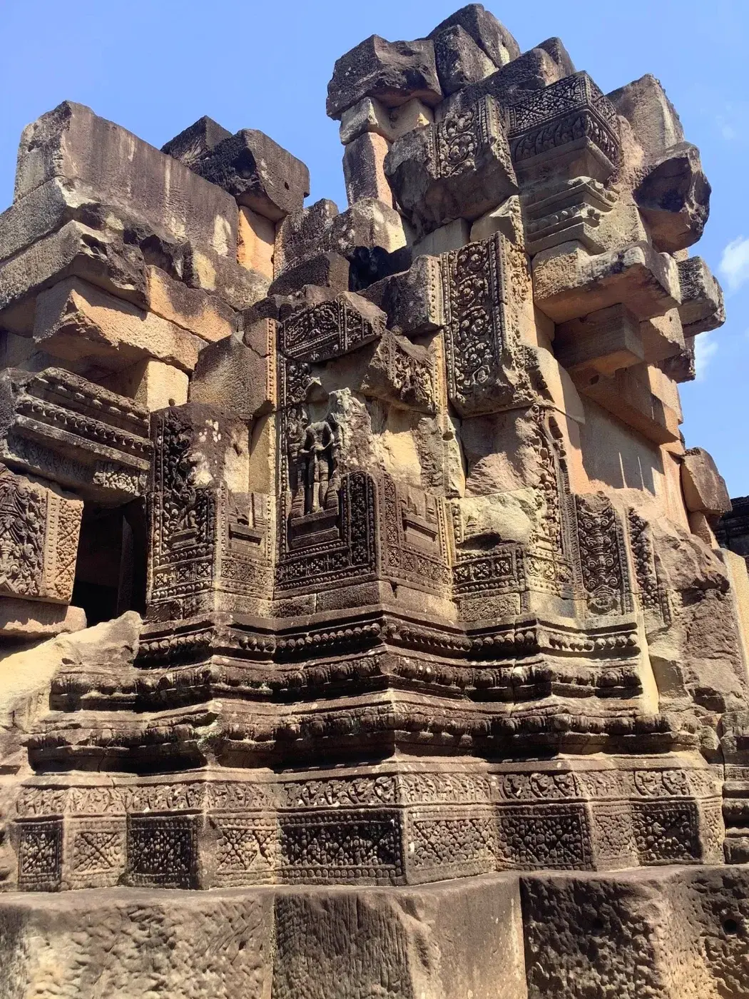 ตรงนี้เรานั้นเดินแล้วเดินอีก รอบข้างล้างของประตูนั้นมีการสลักในรูปของฤๅษีหรือยักษ์ ที่เรายังสงสัยและคิดว่าเขาทำอย่างไรได้นี่คือากรทำทางเดินที่เป็นหินก้อนเดียวกันแล้วหนาด้วย หากว่าคนยกน่าจะไม่ขึ้นต้องใช้รถเคน แต่อาจจะยกยากอาจจะต้องทุบ แต่ทำไมเมื่อร้อยสองร้อยปีสามารถที่จะทำได้ในการเรียงกินเป็นปราสาท ยิ่งเป็นประตูไม้ใช่ไม้นะแต่มันคือหินตรงเบย สุดยอดมากคนสมัยนั้น