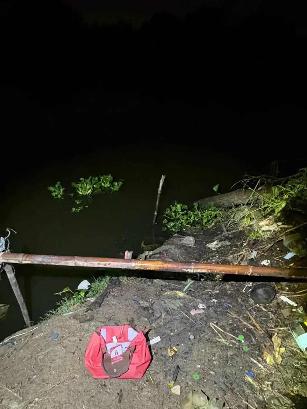 ทิ้งกระเป๋าสะพายสีแดงไว้ริมคลอง