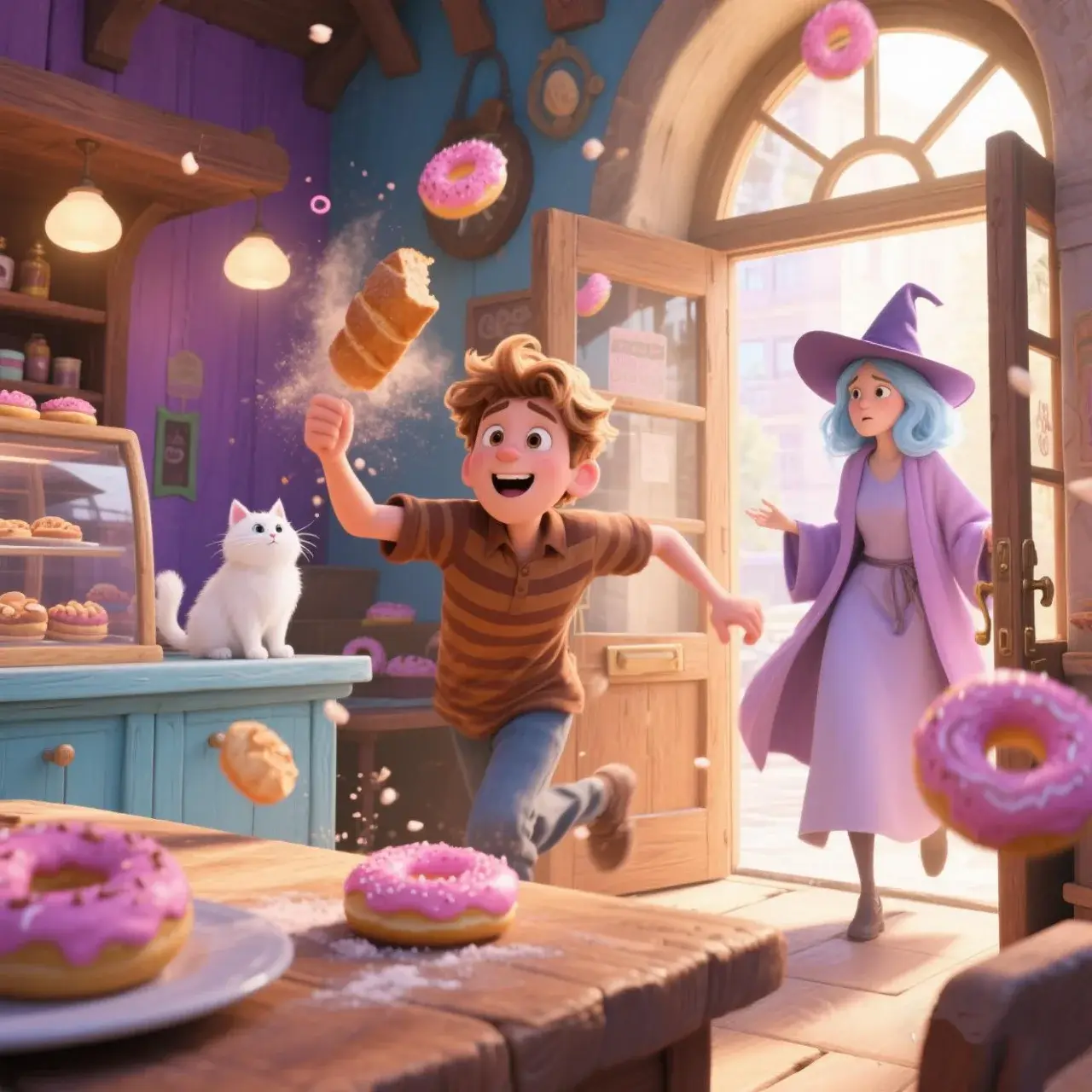 ในหมู่บ้านเมริเวลล์ที่เต็มไปด้วยเวทมนตร์และความแปลกประหลาด ฟินน์หนุ่มเจ้าของร้านขนมไม้เก่า กำลังวิ่งไล่จับขนมปังอบกรอบที่ดื้อเดินได้เองอยู่บนพื้นไม้เก่าของร้าน