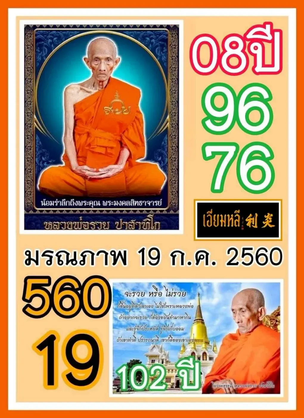 "เลขเด็ดเกจิวัดดัง" ชื่อนี้ก็การันตีถึงความขลัง ทั้งแม่นยำและไม่เคยเป็นสองรองใคร เลขดังขายดีมีแต่คนอยากได้ ให้เลขเด่นและเลขท้าย 2 ตัวแบบเน้นๆ ไม่มีกั๊ก สำหรับใครที่ยังไม่มีข้อมูล หรือลอตเตอรี่ ก็รีบนำเอาแนวทางเหล่านี้ไปใช้กันดูเราขอแนะนำ แต่ก็โปรดใช้วิจารณญานกันด้วยนะจ๊ะ เพราะว่าการเสี่ยงโชคย่อมมีความเสี่ยงเสมอ ควรศึกษาข้อมูลให้รอบคอบก่อนตัดสินใจซื้อทุกครั้ง และซื้อตามกำลังที่ตัวเองมีโดยไม่เบียดเบียนตนเอง และผู้อื่น ทำแบบนี้รับรองโชคดีมาแน่ๆ ว่าแต่งวดนี้มีตัวเลขใหนบ้างที่น่าสนใจ พร้อมกันหรือยัง ว่าแล้วเราตามไปดูกันได้เลย