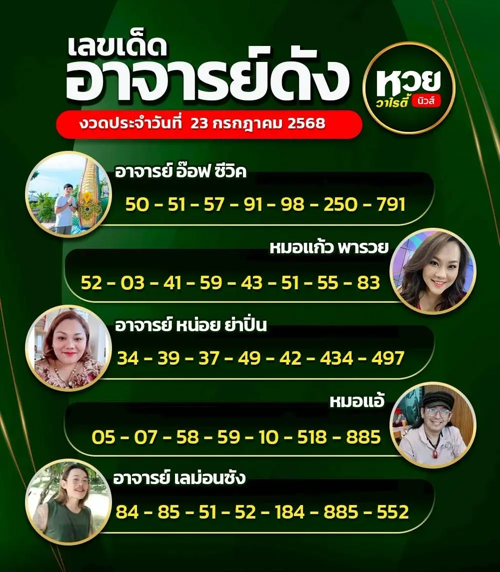 สำหรับลอตเตอรี่ในงวดนี้ ออกวันศุกร์ที่ 1 สิงหาคม 2568 เหล่าเซียนหวย และบรรดาคนรักตัวเลขทั้งหลาย ได้โปรดมารวมตัวกันทางนี้เลย เพราะเรามีแนวทางเลขเด็ด หวยดังจากสำนักต่างๆ ทั่วฟ้าเมืองไทย ที่ไหนเขาบอกว่าดีว่าเจ๋ง หรือมีเลขเด็ด เลขดังสถิติแม่นๆ ที่เรียกว่าเข้าแทบทุกงวด เราก็ไม่รอช้า รีบคว้าเอามาฝากบรรดาสมาชิกทุกท่านทันที เพื่อเอาไว้ใช้สำหรับพิจารณาในการเลือกซื้อหวยต่อไป