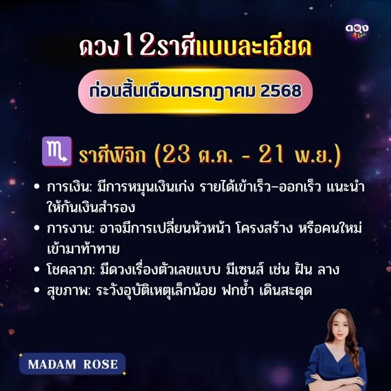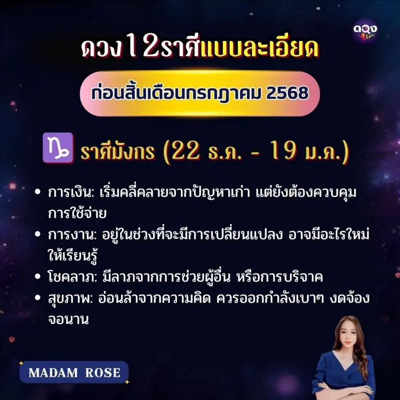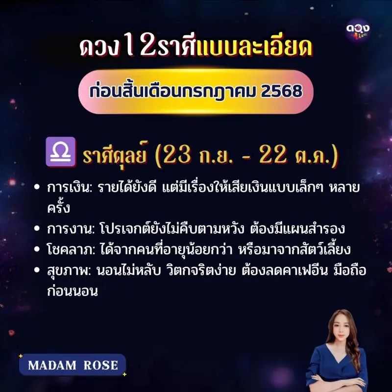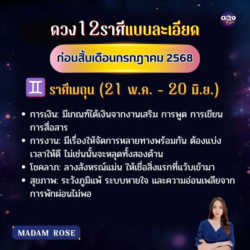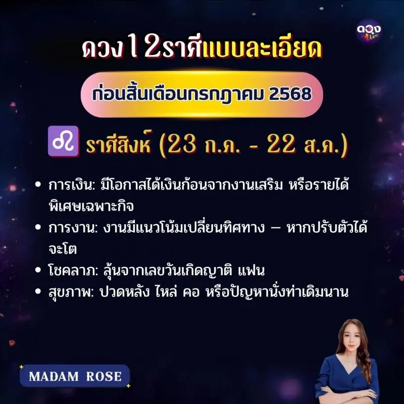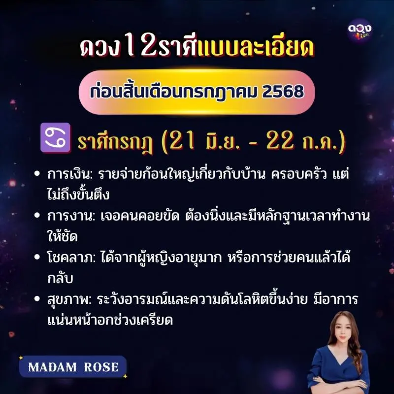 ดวง 12 ราศีแบบละเอียด ก่อนสิ้นเดือนกรกฎาคม 2568 byMADAM ROSE