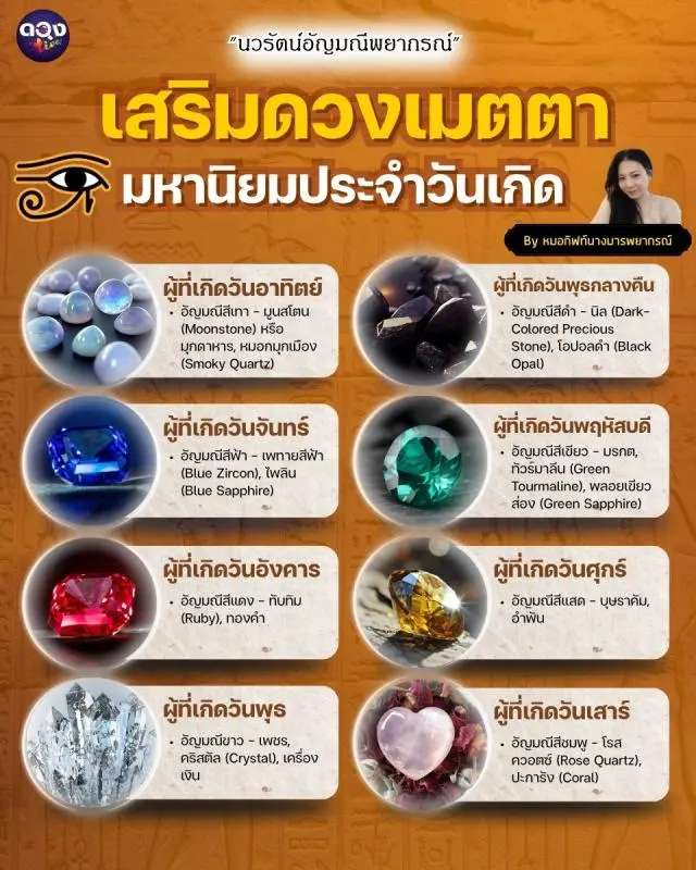 นวรัตน์อัญมณีพยากรณ์ เสริมดวงเมตตามหานิยมประจำวันเกิด By หมอกิฟท์นางมารพยากรณ์