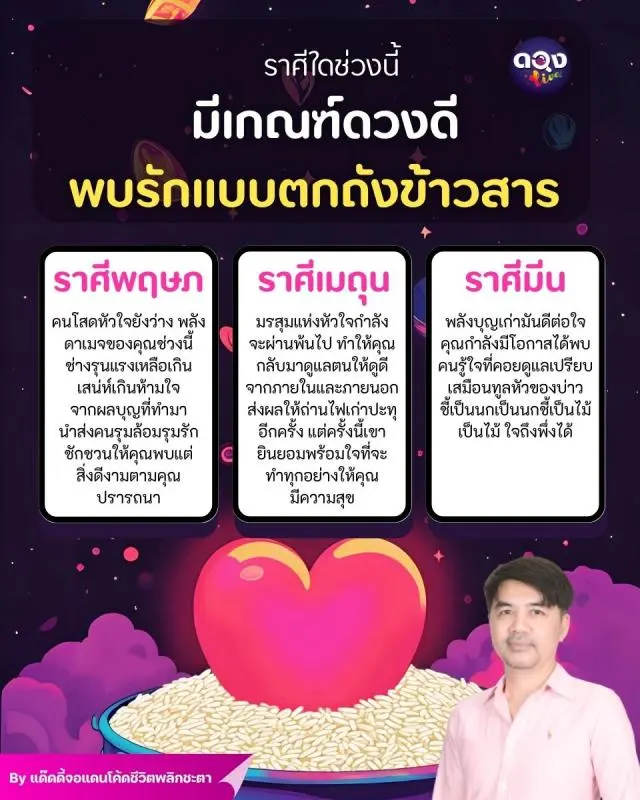 ราศีใดช่วงนี้ มีเกณฑ์ดวงดี พบรักแบบตกถังข้าวสาร by แด๊ดดี้จอแดนโค้ดชีวิตพลิกชะตา
