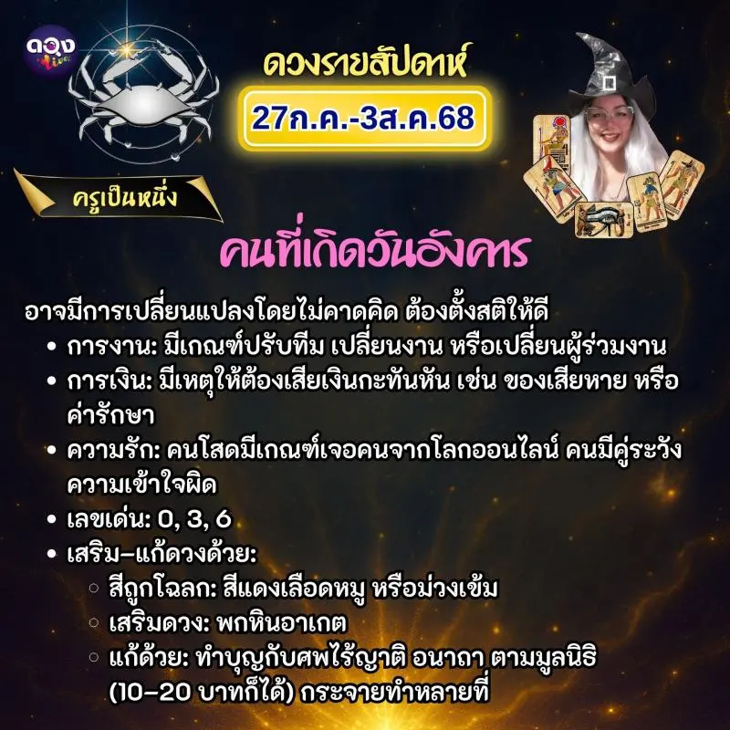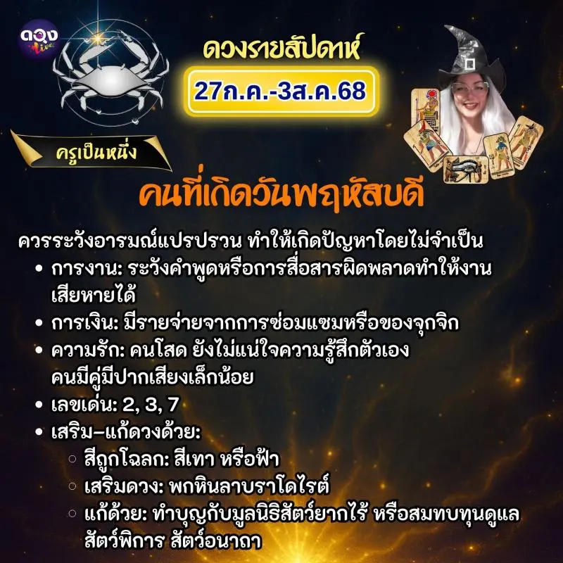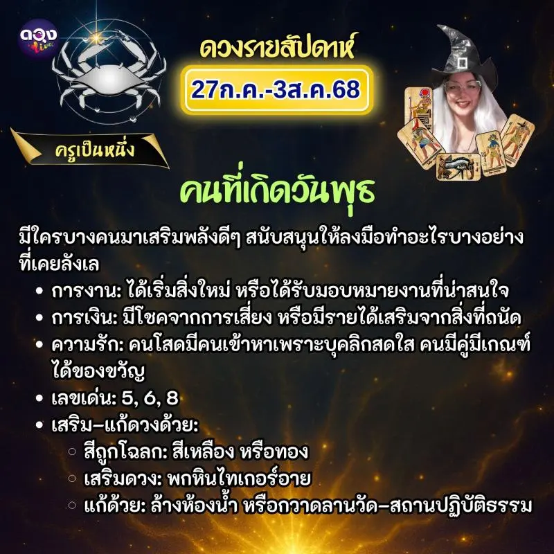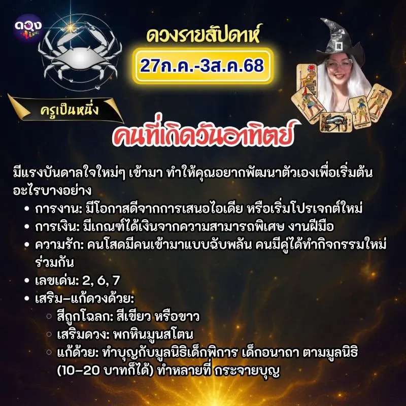 ดวงรายสัปดาห์ 27 กรกฎาคม – 2 สิงหาคม 2568 byครูเป็นหนึ่ง