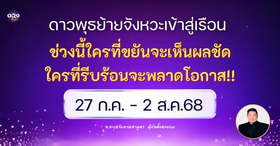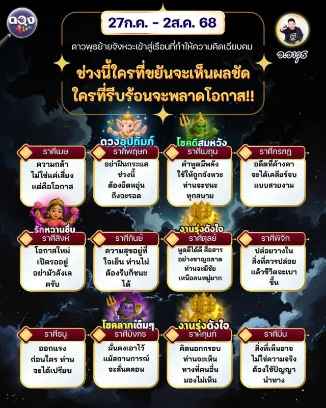 ดวงรายสัปดาห์ประจำวันที่ 27 กรกฎาคม – 2 สิงหาคม 2568 โดย อ.อาวุธจับยามสามตา – ผู้ก่อตั้งดวงLive