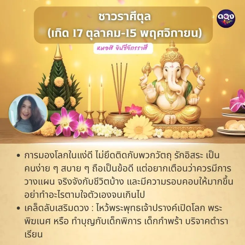 เคล็ดลับเสริมดวง: ไหว้ศาลหลักเมือง พระแม่ลักษมี พระแม่ธรณีบีบมวยผม หรือร่วมทำบุญถวายเครื่องใช้ไฟฟ้า ถวายบาตรพระ