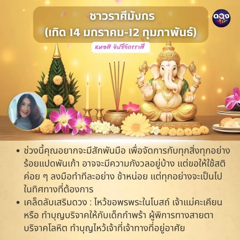 เคล็ดลับเสริมดวง: ไหว้พระแม่อุมาเทวี พระแม่จามเทวี ท้าวสุรนารี หรือทำบุญผ้าป่า กฐิน ร่วมสมทบทุนสร้างโรงเรียน โรงพยาบาล