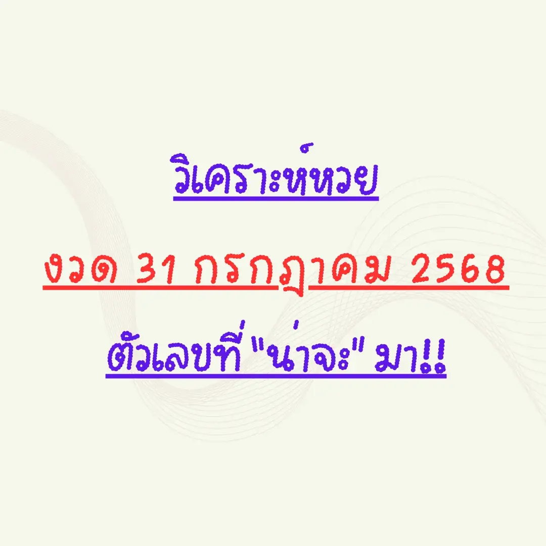วิเคราะห์หวยงวด 31 กรกฎาคม 2568 ตัวเลขที่ “น่าจะ” มา!!