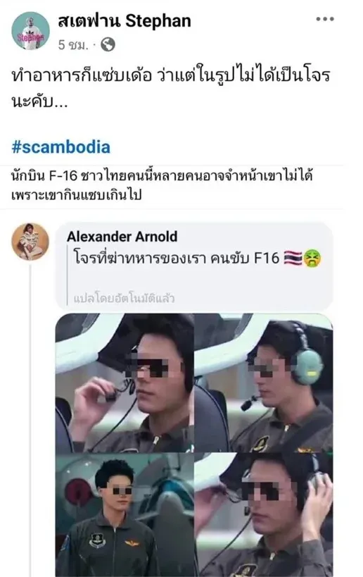 "สเตฟาน" โดนทัวร์เขมรลง! หลังมีมือดีปล่อยข่าวว่า เป็นคนขับ F-16 ของไทย