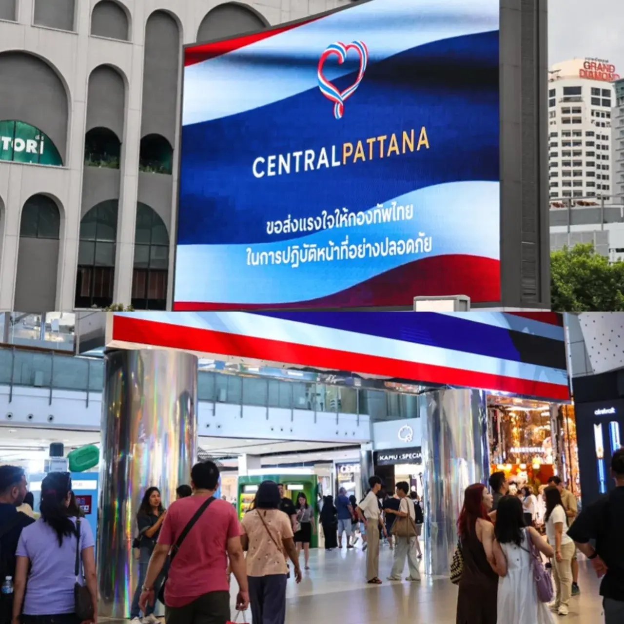 วันที่27 กรกฎาคมที่ผ่านมาได้มีรายงานจากทีมข่าว THE STANDARD ว่าศูนย์การค้า เซ็นทรัลเวิลด์ ซึ่งเป็นหนึ่งในศูนย์การค้าภายใต้เครือบริษัท เซ็นทรัลพัฒนา จำกัด (มหาชน) ได้ดำเนินการฉายภาพธงชาติไทยบนจอ LED ทั้งภายในและภายนอกศูนย์การค้าทั่วประเทศ เพื่อเป็นการแสดงพลังใจและส่งกำลังใจไปยังเจ้าหน้าที่ทหารผู้ปฏิบัติหน้าที่แนวชายแดน รวมถึงประชาชนที่ได้รับผลกระทบจากสถานการณ์ความตึงเครียดบริเวณชายแดนในขณะนี้