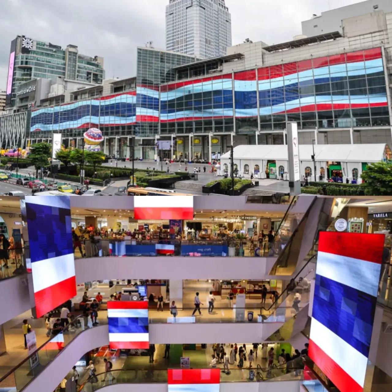 เซ็นทรัลเวิลด์ฉายภาพธงชาติไทยบนจอ LED เพื่อส่งพลังใจแก่เจ้าหน้าที่และประชาชนตามแนวชายแดน