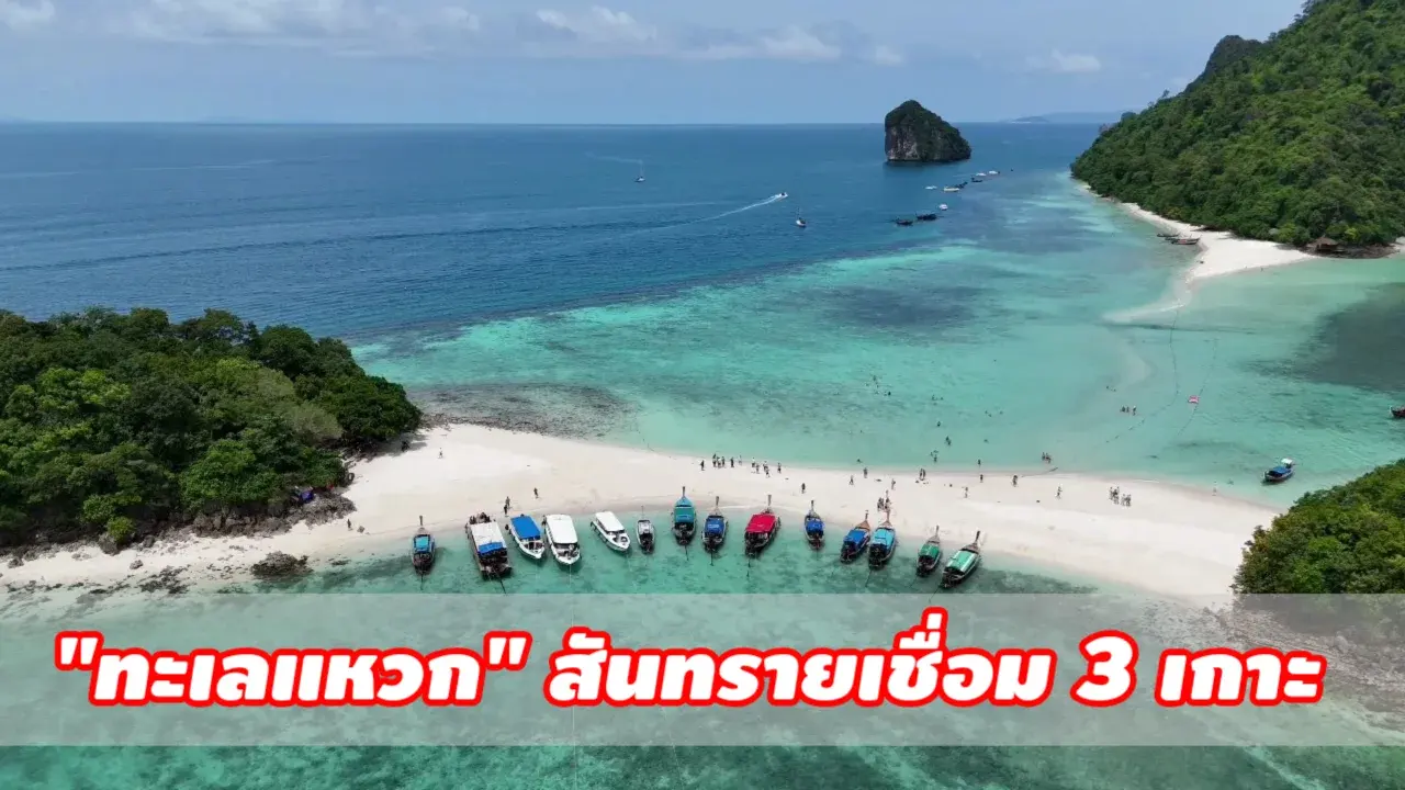 ตื่นตา เปิดภาพมุมสูงสุดตื่นตา “ทะเลแหวก” อัญมณีแห่งอันดามัน เส้นทางสันทรายขาวโพลนเชื่อม 3 เกาะกลางทะเลกระบี่ เป็นอีกหนึ่งสถานที่แหล่งท่องเที่ยวทางทะเลที่นทท.ฝันจะมาเยือนสักครั้งเมื่อมากระบี่