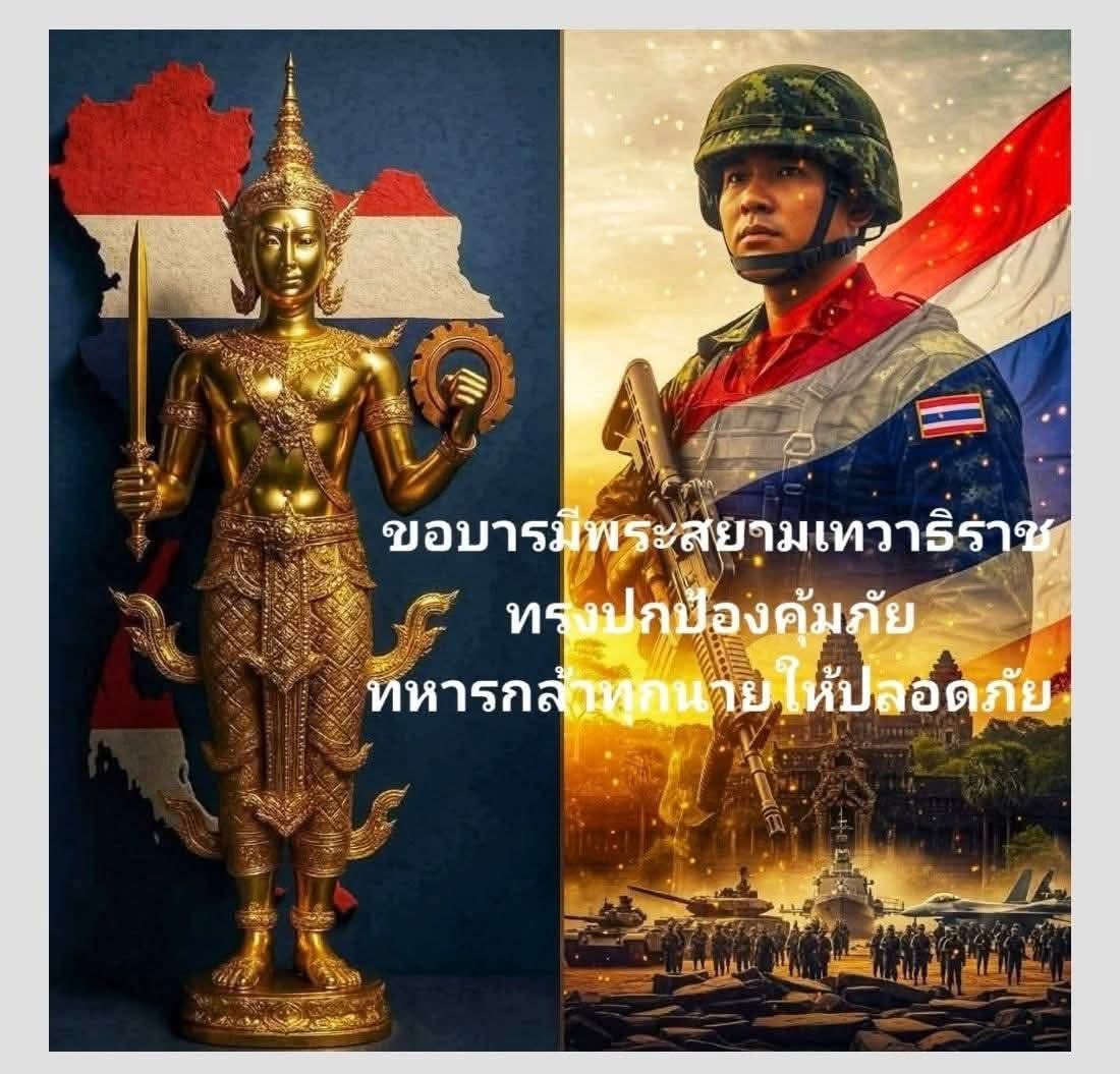 ขอส่งกำลังใจให้สามเหล่าทัพและพี่พี่น้องน้องเพื่อนเพื่อนทหารเรือทหารอากาศและทหารบกทุกๆท่านโดยเฉพาะญาติพี่น้องของข้าพเจ้าพร้อมรบสู้เพื่อปกป้องบ้านเมืองพื้นแผ่นดินไทยนี้อย่าให้ใครมารุกรานคนที่คิดร้ายขอให้แพ้ภัยตนเอง