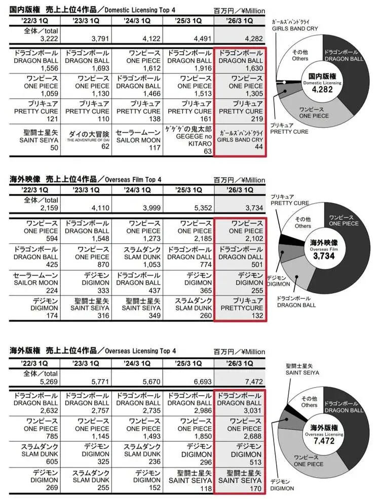รายงานประจำไตรมาสของ Toei Animation ถือเป็นสัญญาณเตือนให้วงการอุตสาหกรรมตื่นตัว แม้แต่ตัวละครที่โด่งดังที่สุดก็ยังถูกท้าทายเมื่อการแข่งขันเปลี่ยนแปลงไป แม้ว่าDragon Ballจะยังคงเป็นผู้ยิ่งใหญ่ แต่One Pieceได้พิสูจน์ให้เห็นแล้วว่านวัตกรรมที่สม่ำเสมอและการทำงานร่วมกันของสื่อผสมสามารถพาแฟรนไชส์เก่าแก่หลายสิบปีให้ก้าวขึ้นสู่จุดสูงสุดทางการเงินได้
