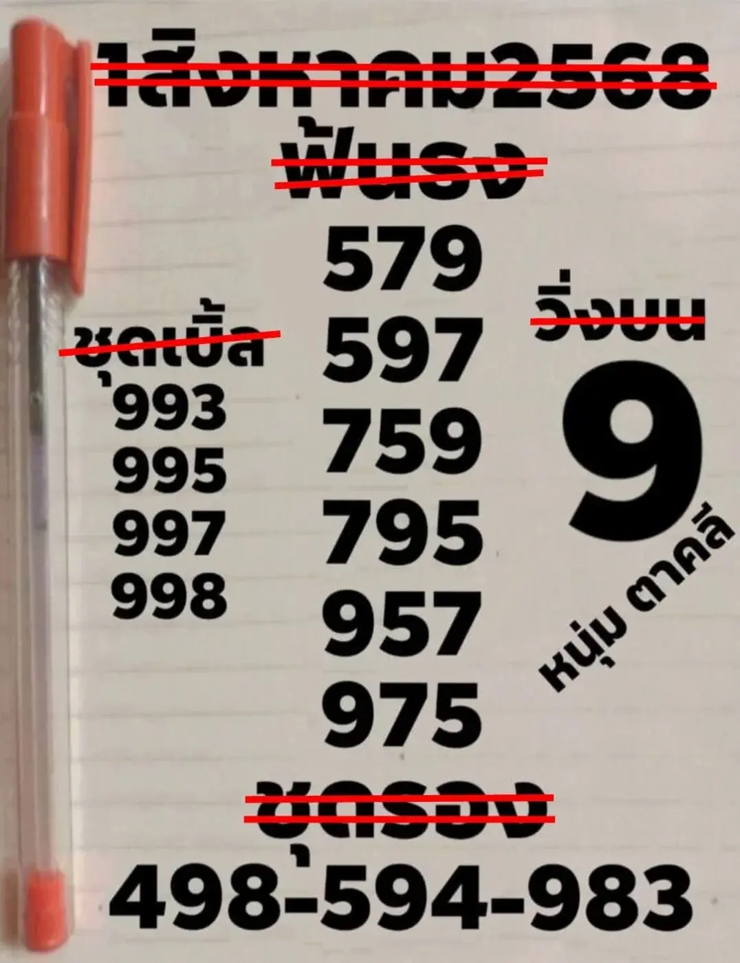 - เลขชุดรองได้แก่ 498-594-983