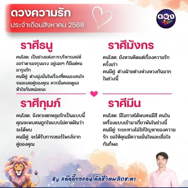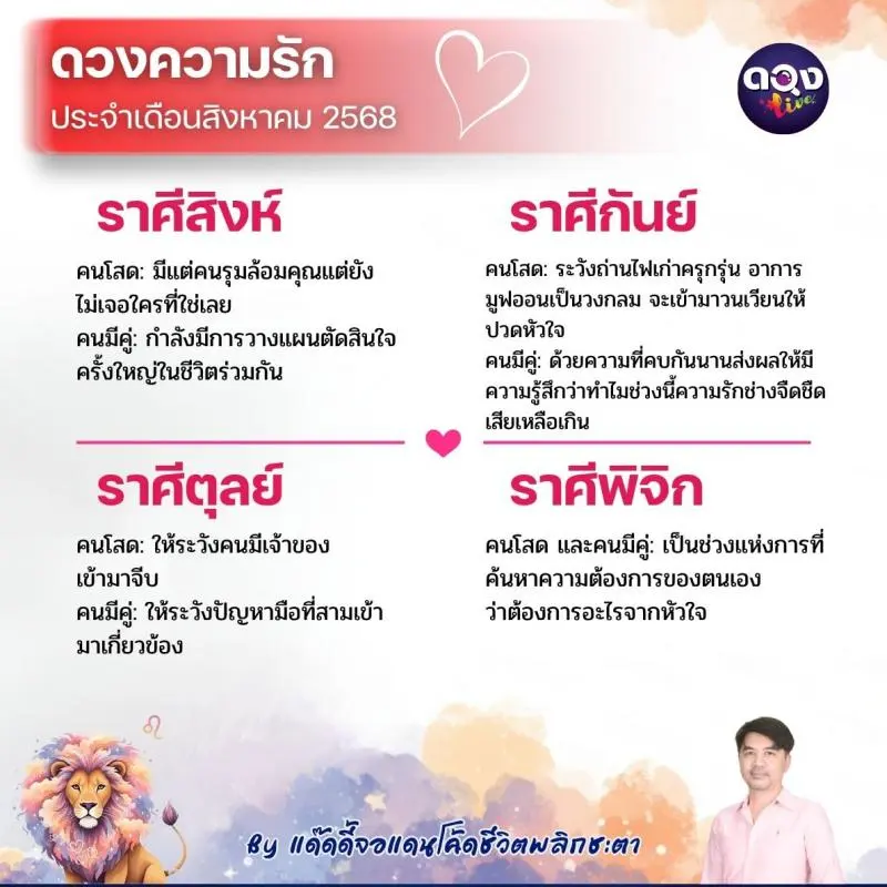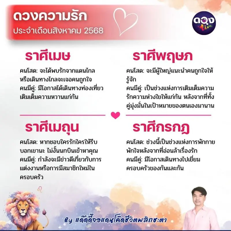ดวงความรักประจำเดือนสิงหาคม 2568 โดย แด๊ดดี้จอแดน โค้ดชีวิตพลิกชะตา