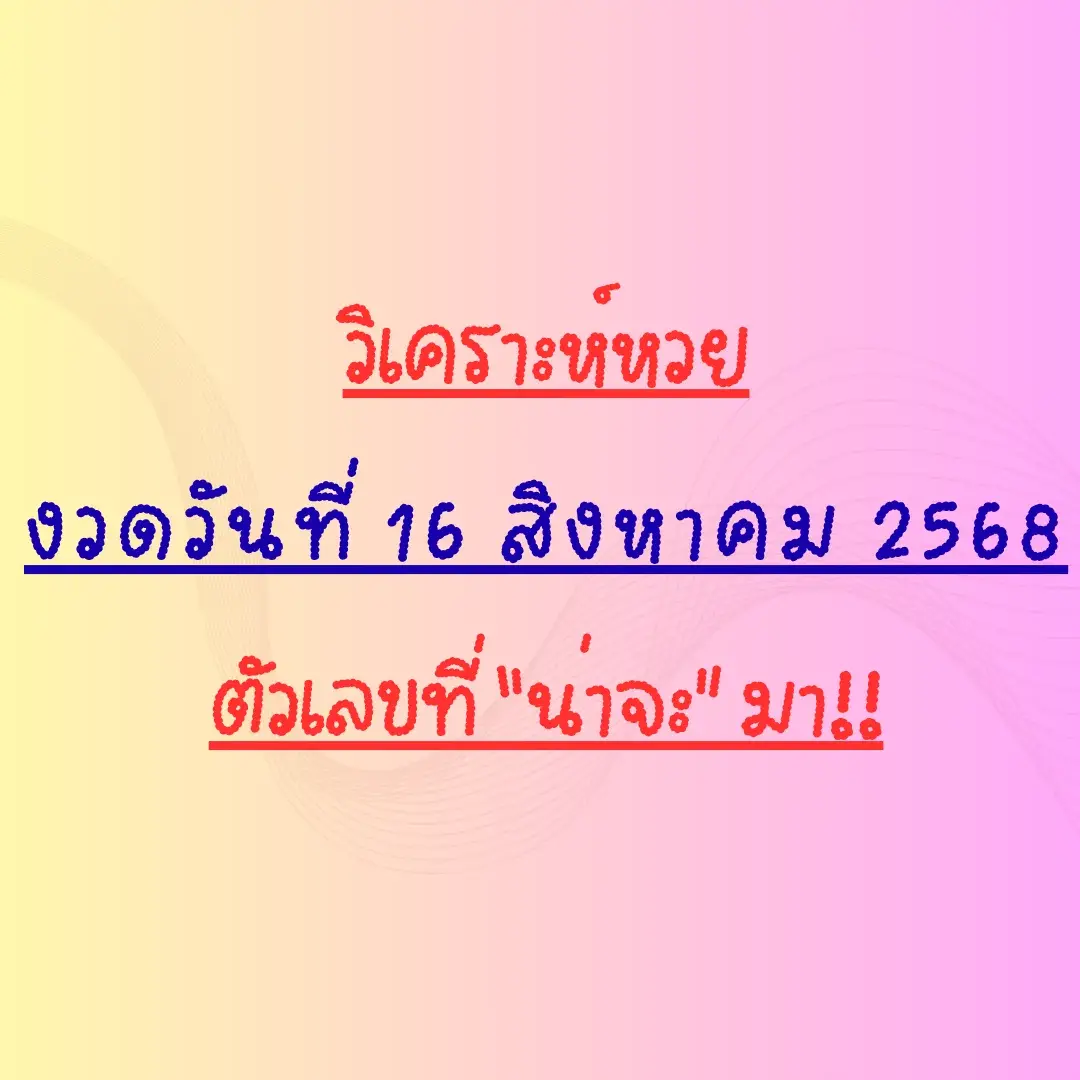 วิเคราะห์หวย งวดวันที่ 16 สิงหาคม 2568 ตัวเลขที่ “น่าจะ” มา!!