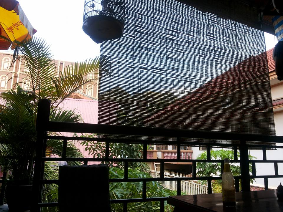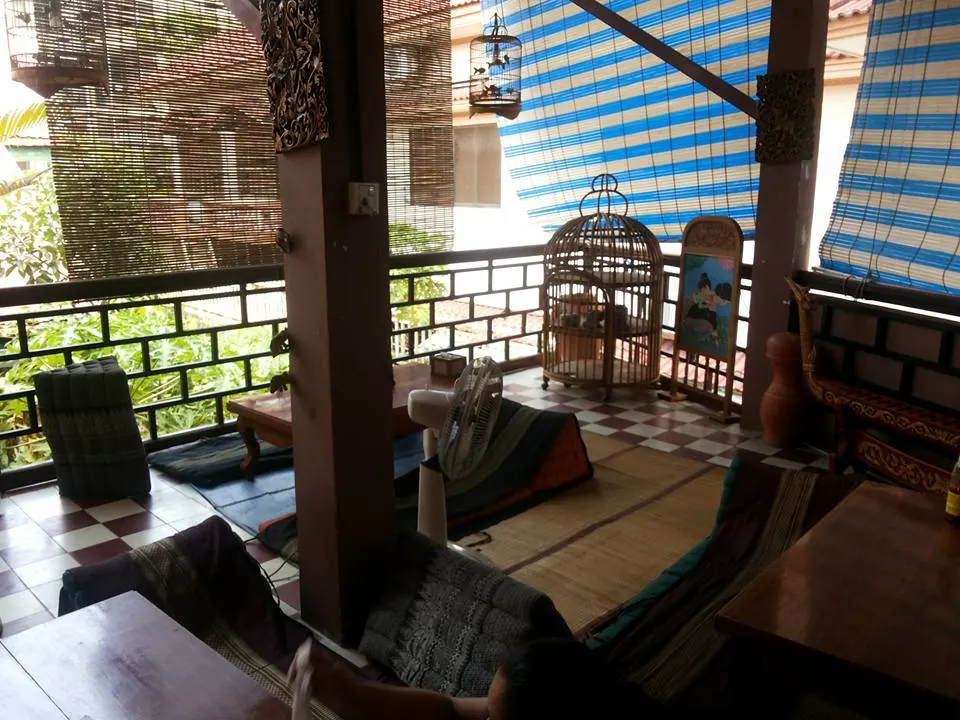 นั่งหย่อนขาสบายใจ มองไปเห็นต้นมะละกอและหลากหลายต้นไม้ที่สร้างพื้นที่สีเขียวให้กับเรา ตอนแรกที่มานั้นเหมือนร้านอาหาร แต่พอเรานั้นอยู่ไปเรื่อยๆ จนทำให้กลายเป็นเหมือนบ้าน หากว่าในบ้านภาษาเรานั้นจะเรียกว่า เกย ที่ออกมานั่งเล่นในที่โล่งเป็นที่สามารถที่จะยื่นขาออกมาได้ โล่งไว้ทำกิจกรรมกับครอบครัว อย่างการทานอาหารจำนวนมาก
