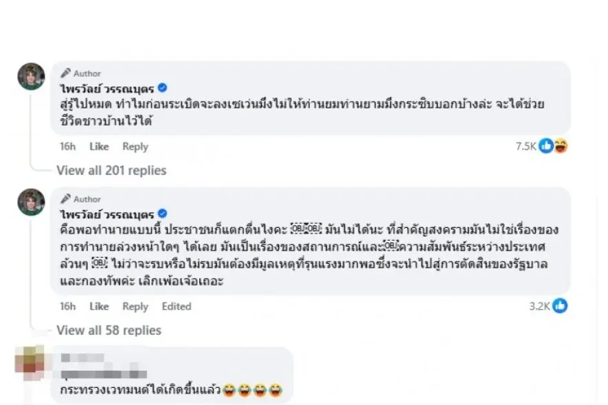 ท่ามกลางสถานการณ์ชายแดนที่ตึงเครียดและอ่อนไหวต่อความมั่นคงของชาติ ได้มีหมอดูชื่อดังออกมาทำนายถึง "สงครามระหว่างประเทศ" จนกลายเป็นกระแสวิพากษ์วิจารณ์และสร้างความแตกตื่นบนโลกออนไลน์