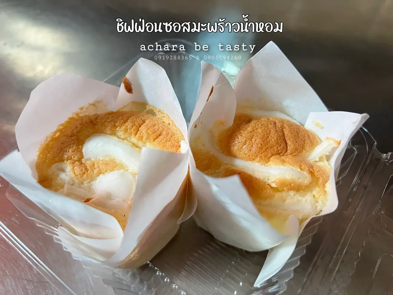 ขนมชิ้นนี้อร่อยมาก ชิฟฝ่อนซอสมะพร้าวน้ำหอม ชิ้นนี้อร่อยมากแต่ในการกินนั้นจะต้องเตรียมน้ำนั้นไว้ด้วยเพื่อที่จะกินได้อย่างอร่อย มะพร้าวที่ใส่นั้นอ่อน และหอมหวาน ก่อนที่จะต้องมีการตักแป้งเตรียมที่จะใส่เข้าไปในตู้อบ ก่อนที่จะนำดเข้าไปในตู้อบนั้นจะเตรียมแล้ว