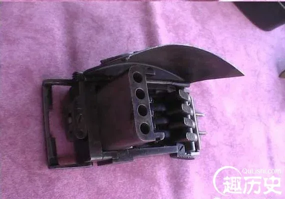 ความลับที่แท้จริงอยู่ที่รูเล็กๆ หลายรูที่ซ่อนอยู่ด้านในหัวเข็มขัด ซึ่งเมื่อเปิดเผยออกมาแล้วก็คือช่องสำหรับ ใส่กระสุน นั่นเอง! โดยมี ไกปืน ซ่อนอยู่ตามตำแหน่งลูกศร เมื่อเหนี่ยวไก ตัวยิงจะทำงานและกระสุนจะพุ่งออกไปอย่างรวดเร็ว
