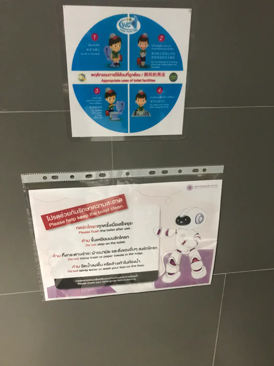 การเข้าห้องน้ำที่นี่คือที่สุดของสุขอนามัยในการเข้าห้องน้ำมาก น่าจะเป็นห้องน้ำที่มีเสียงดังที่สุดแล้ว แต่เป็น้สียงดังจากคนใช้งาน ที่อ่านป้ายให้ความรู้ เป็นห้องน้ำแห่งการเรียนรู้ได้เลย มีในทุกมุมแต่ไม่ได้เลอะเพราะมีการติดที่ตรงตามการใช้งาน