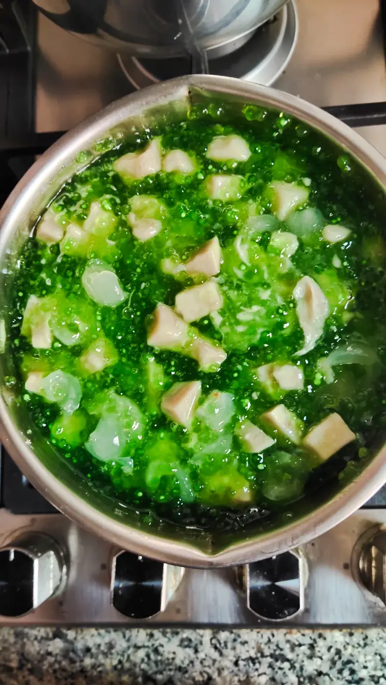 🍲 จากนั้นเตรียมน้ำใส่หม้อตั้งไฟต้มให้เดือด เมื่อน้ำเดือดดีแล้วจึงนำสาคูลงต้ม และคนไปเรื่อย ๆ เม็ดสาคูจะเริ่มใส ในขั้นตอนนี้ใช้เวลานานพอสมควร ประมาณ 20-30 นาที⏳