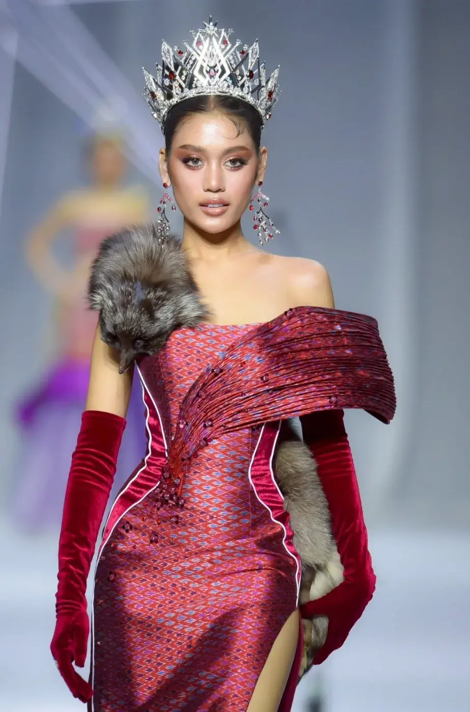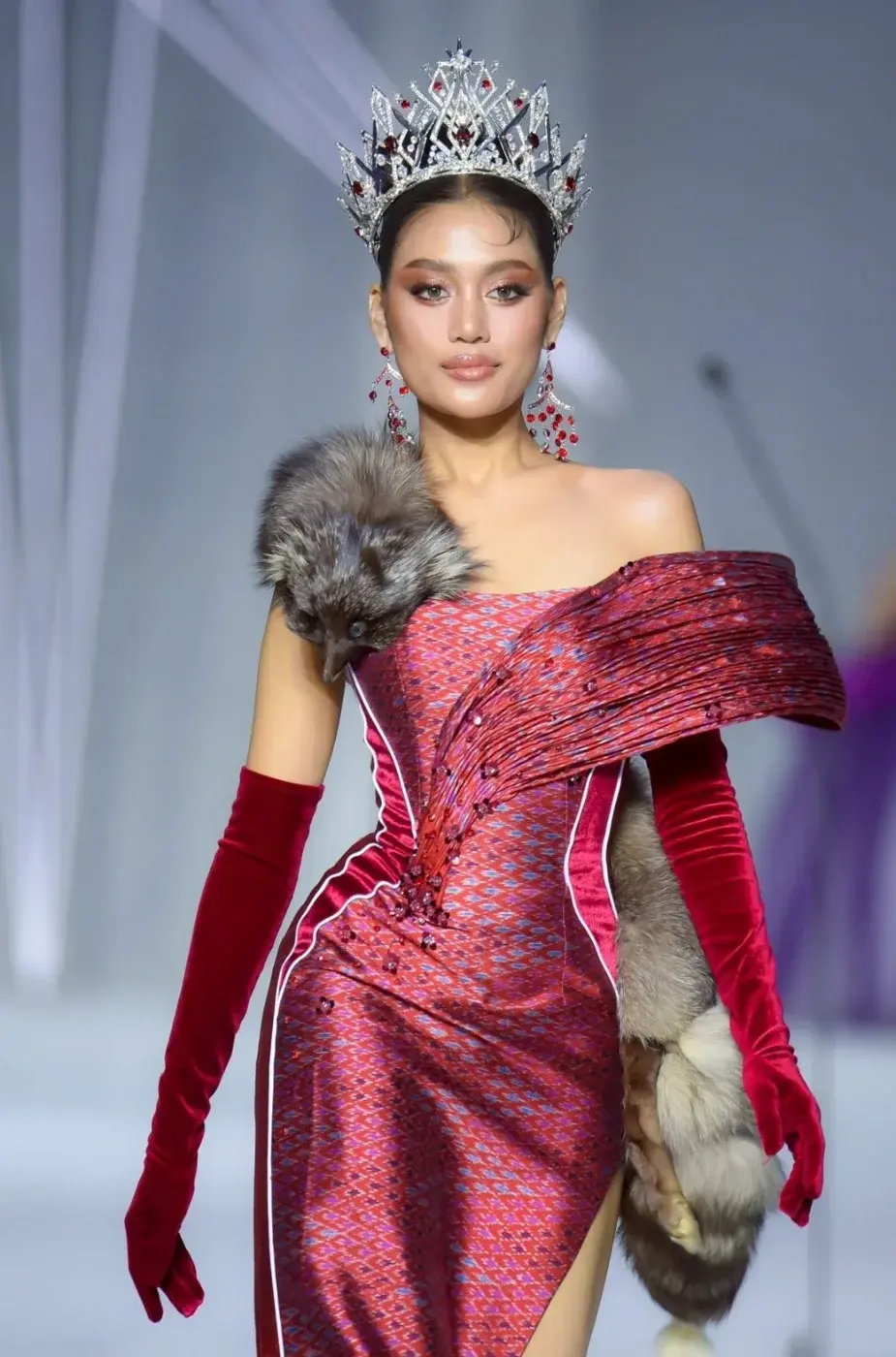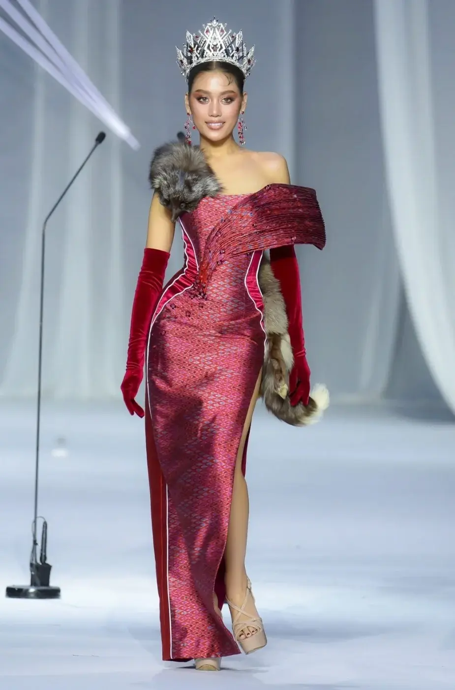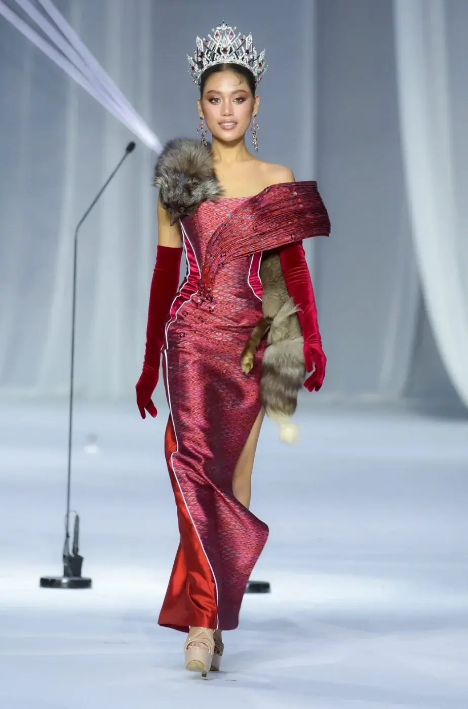ปริยากร จีนดอน (ปาย) มิสยูนิเวิร์สหนองคาย - Miss Universe Nong Khai 2025 งามสง่า ในชุดไทยพระราชนิยม และ ชุดราตรีผ้าไทย รอบ 𝐎𝐩𝐞𝐧 𝐭𝐨 𝐭𝐡𝐞 𝐔𝐧𝐢𝐯𝐞𝐫𝐬𝐞 เปิดตัวผู้เข้าประกวด Miss Universe Thailand 2025 : The New Era ทั้ง 77 จังหวัด ในแฟชั่นโชว์ชุดไทยประจำชาติ (Chud Thai) และชุดราตรีที่ได้เหล่าดีไซเนอร์ออกแบบตัดเย็บจากผ้าไทยพื้นถิ่น 77 ชุด 77 แบบ เมื่วันที่ 5 สิงหาคม 2568 ณ MGI Hall, Bravo BKK