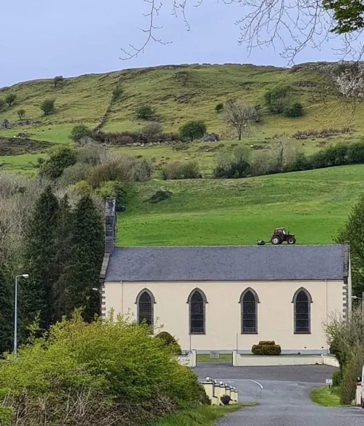 19. ฉันเห็นว่ามีรถแทร็กเตอร์ที่อยู่บนหลังคาโบสถ์ในไอร์แลนด์