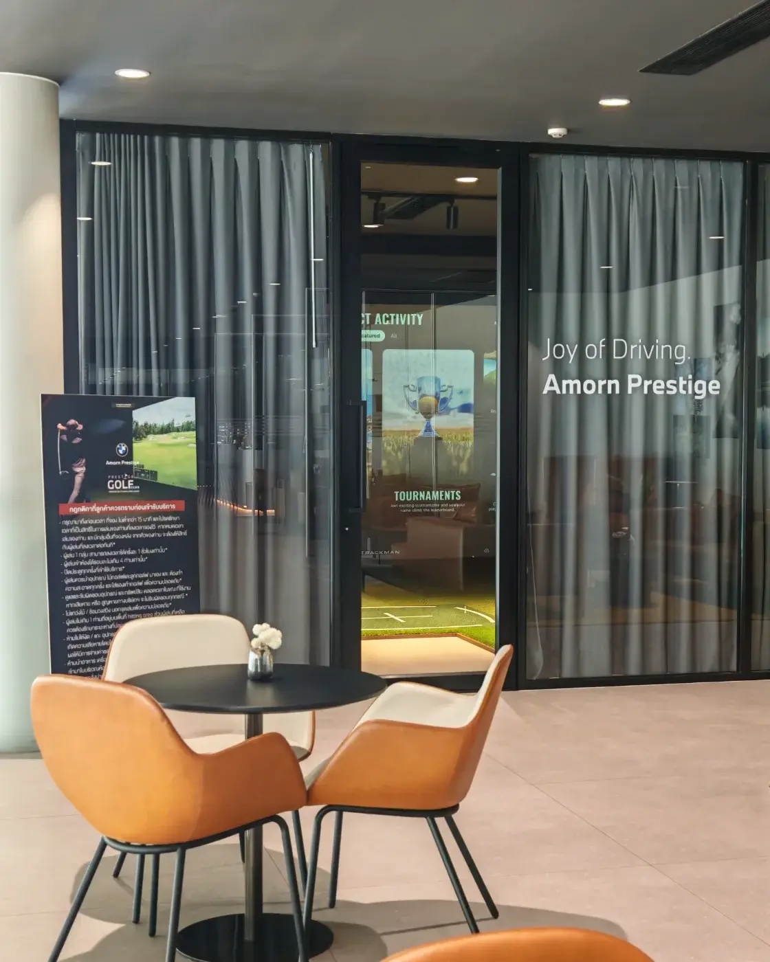 ส่งกุญแจให้พนักงานแล้วพนักงานก็เชิญมาชั้นสองนั่งรอแบบสบายใจ แต่สิ่งที่แก๊งเพื่อนสาวของเราตื่นเต้นกว่าบริการ fast lane คือโซนนั่งรอนี่แหละ แบบว่าเฮ้ย..ใหญ่อลังกาลมากกกกกกก แบบตะโกน << เหมือนพาเพื่อนมานั่งเล่นร้านกาแฟ ได้คอนเท้นได้กินฟรีไม่อั้นอีก ถ่ายรูปกันให้ฉ่ำ เพื่อนบอกถ้าเอารถเข้าศูนย์บริการครั้งหน้าชวนด้วยนะ 55555 ที่นี่มีกิจกรรมให้เล่นระหว่างรอด้วยอ่ะ ฟีลเหมือนนั่งรอบินในเลานจ์สายการบินประมาณนั้นเลย อาหาร-ขนม-กาแฟจริงๆ ก็เหมือนสาขารัชโยธินกับรัชดานะ แต่ได้ความลักชู ความไฮโซมากกว่า บรรยากาศดีกว่านั่นเอง แถมมีห้องไดร์ฟกอล์ฟ Golf Simulator ด้วยหละ แต่ๆๆๆ ต้องเอาไม้กับรองเท้ามาเอง เค้ามีแค่ห้องให้ใช้จ้า รอบหน้าไม่พลาดแน่ รีวิวตีกอล์ฟระหว่างรอรถเข้าศูนย์ดีมั้ยนะ อิอิ