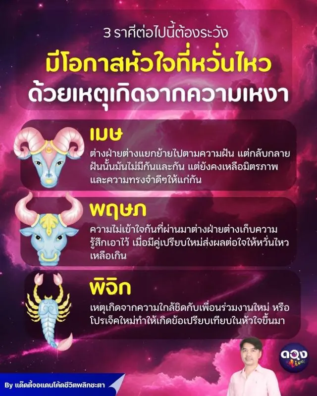3 ราศีต่อไปนี้ ต้องระวังมีโอกาสหัวใจที่หวั่นไหว ด้วยเหตุเกิดจากความเหงา By แด๊ดดี้จอแดนโค้ดชีวิตพลิกชะตา