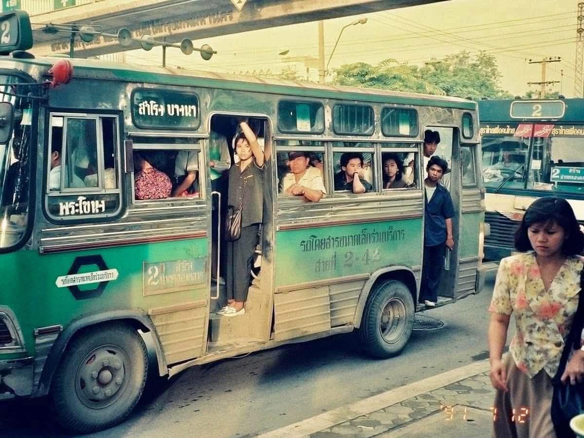 ส่วนการนั่งรถเมล์ในยุค ‘90 ก็ไม่น้อยหน้า บางคันคือ “รถหวานเย็น” ที่มีเสียงเพลงลูกทุ่งคลอไปตลอดเส้นทาง บางคันคือ “รถแอร์เย็นเฉียบ” ที่ผู้โดยสารต้องพกเสื้อกันหนาว แต่ไม่ว่าจะเป็นแบบไหน การขึ้นรถเมล์ในยุคนั้นมักมีดราม่าเล็ก ๆ ให้ลุ้นเสมอ ไม่ว่าจะเป็นการแย่งที่นั่ง การวิ่งปรี่มาขึ้นรถตอนรถยังไม่หยุดสนิท หรือการโหนราวข้างประตูแบบพระเอกหนังบู๊