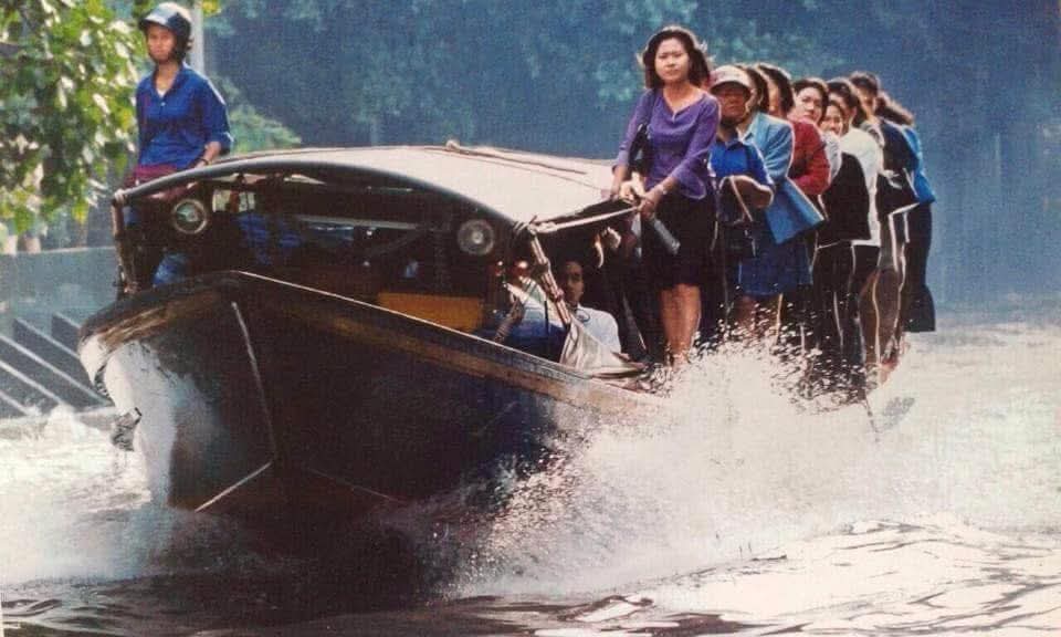 ภาพจำของคนกรุงเทพฯ ในเวลานั้น คลองแสนแสบไม่ใช่เพียงเส้นทางคมนาคม แต่มันคือ “ทางด่วนสายน้ำ” ที่รวดเร็วที่สุดในการฝ่ารถติดมหาโหด แต่ความเร็วก็แลกมากับความท้าทาย—เรือหางยาวขนาดกลางแล่นฉิวไปบนผิวน้ำที่มักมีกลิ่นเฉพาะตัว แถมคลื่นซัดกระแทกแรงจนต้องใช้ผ้าใบกันน้ำกระเด็นที่พร้อมจะเปิด-ปิดราวกับม่านเวทีละคร ผู้โดยสารต้องก้าวข้ามเรืออย่างรวดเร็วเวลาขึ้น-ลง เพราะเรือจอดไม่นาน เสี้ยววินาทีที่พลาดอาจกลายเป็นโชว์ผาดโผนกลางคลองได้เลย