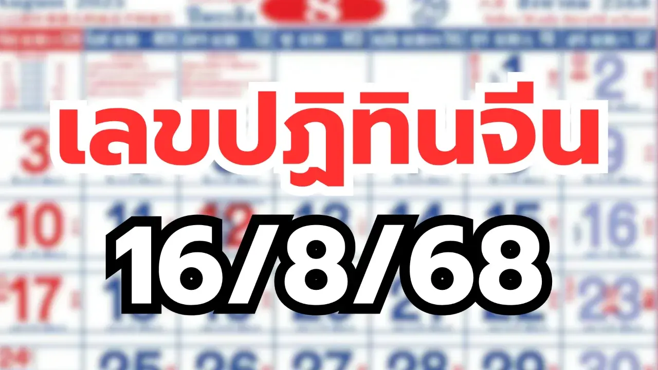 เลขปฏิทิน เป็นตัวเลขที่เขียนกำกับไว้ในปฏิทินบางฉบับ ซึ่งตัวเลขอาจแตกต่างกันออกไป ส่วนใหญ่จะเขียนไว้ตรงกับวันสลากกินแบ่งรัฐบาลออก ทั้งนี้ตัวเลขดังกล่าวขึ้นอยู่กับความเชื่อของแต่ละคน ส่วน เลขปฏิทินจีน 16/8/68 นี้จะมีตัวเลขอะไรกันบ้างไปติดตามกันเลย