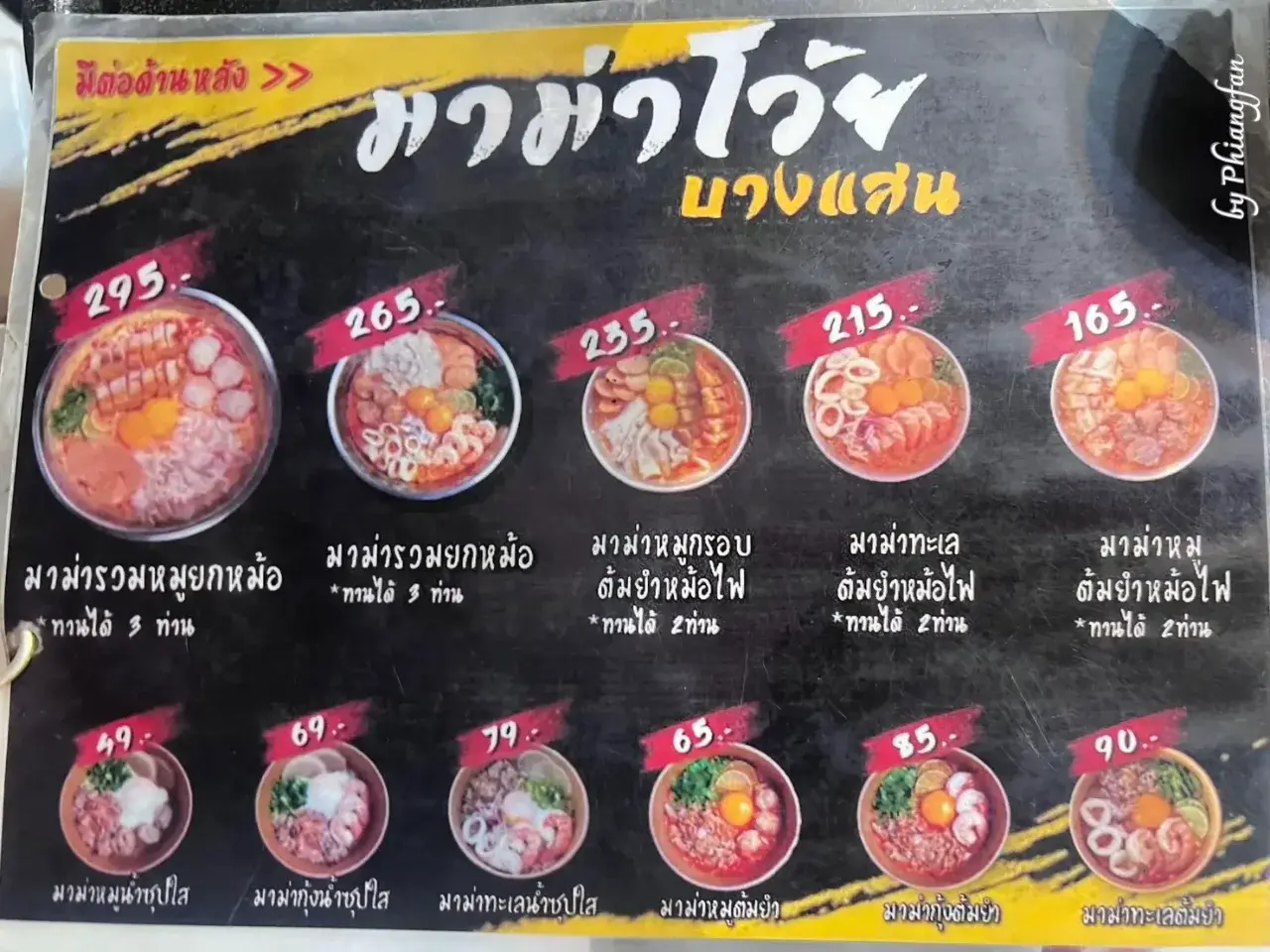 ร้านมาม่าโว้ย บางแสน เมนูที่แนะนำหรือเมนูเด่นประจำร้าน ก็แน่นอนว่าต้องเป็นมาม่าหม้อไฟ จะเป็นแบบทานแบบคนละถ้วย หรือมาเป็นแก๊งอยากทานด้วยกันก็เป็นแบบหม้อไฟ ที่ทานตั้งแต่ 2 - 5 คน แล้วแต่สะดวกเลยค่ะ