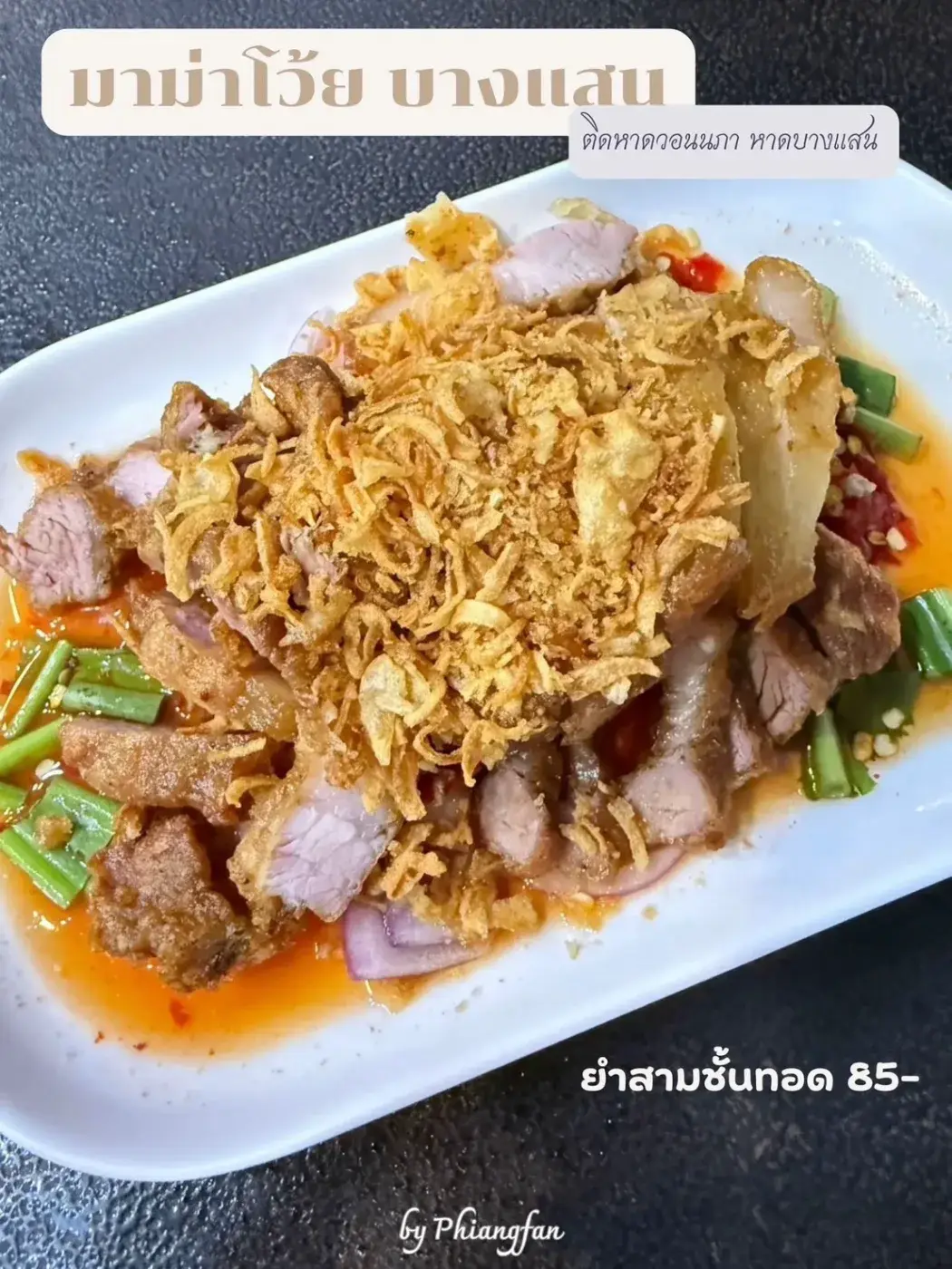 นอกจากสั่งเมนูมาม่าต้มยำเลย สั่งเมนู ยำสามชั้นทอด ราคา 85 บาท คือได้เยอะมากเต็มจานเช่นกันค่ะ รสชาติของยำคือ มีความแซ่บ อร่อย และให้เยอะทานอิ่มค่ะ