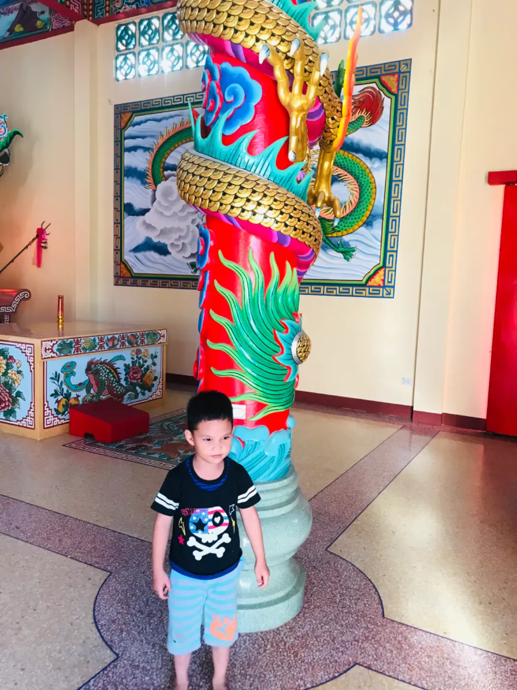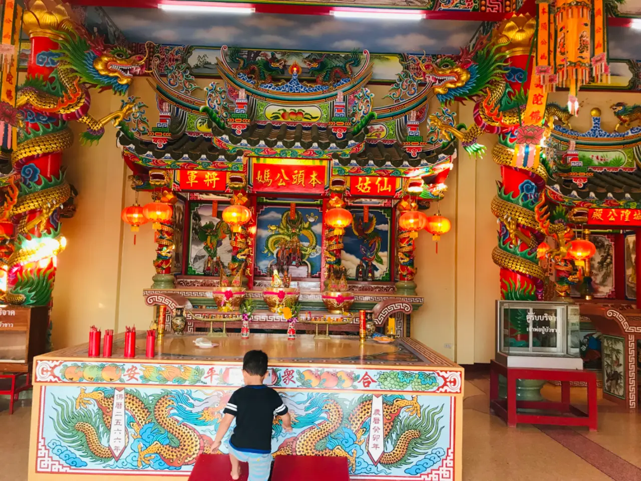 แต่ก่อนที่เรามาน่าจะสิบปีกว่า ยังไม่ได้มีการบูรณะหรือการสร้างใหม่ จะยังไม่สวยเหมือนตอนนี้ พอเรามาครั้งนี้จึงได้เดินข้ามเพื่อเข้าไปชมด้านใน ใช่เลย ความสงบสีสัน หากว่าเรานั้นมีการเปรียบเทียบสถานที่แห่งนี้ก็คือศาลเจ้าของคนจีนที่มีความศรัทธาหลากหลาย