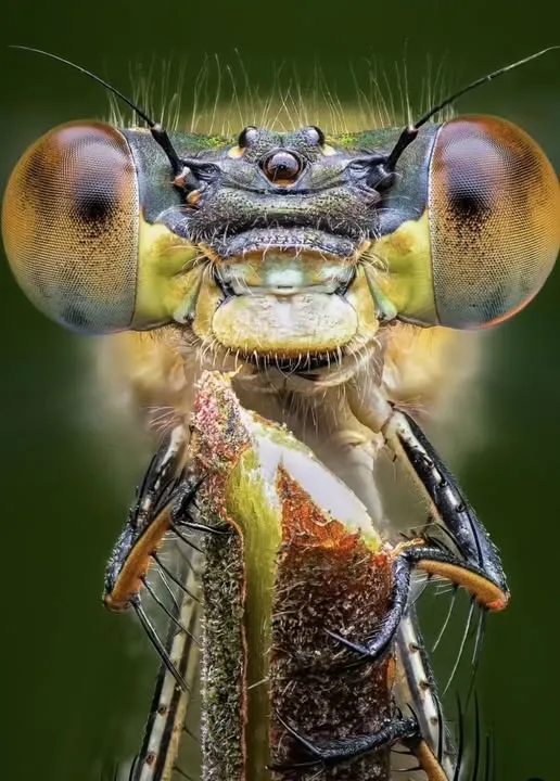 หนึ่งในสิ่งที่ทำให้แมลงปอแตกต่างจากสิ่งมีชีวิตอื่น คือดวงตาประกอบขนาดใหญ่ที่ครอบคลุมแทบทั้งศีรษะ ดวงตาเหล่านี้ประกอบด้วยเลนส์เล็ก ๆ นับหมื่น ซึ่งรวมกันแล้วให้ทัศนวิสัยเกือบ 360 องศา แมลงปอจึงสามารถมองเห็นทั้งด้านหน้า ด้านข้าง และด้านหลังได้พร้อมกันโดยไม่ต้องหันหัว สายตาเช่นนี้ทำให้มันจับความเคลื่อนไหวของเหยื่อได้อย่างแม่นยำ และตอบสนองได้ทันทีเมื่อมีสิ่งใดเคลื่อนไหวในระยะสายตา