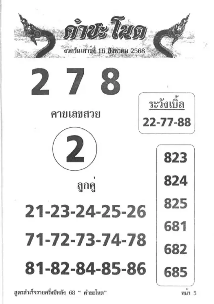 หวยคำชะโนด พญานาคสิ่งศักดิ์สิทธิ์งวดวันที่ 16 สิงหาคม 2568