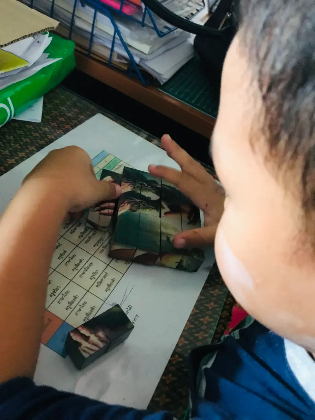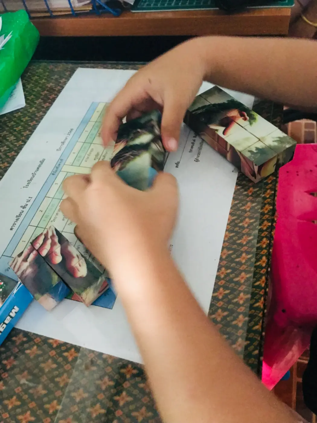 มือสองข้าง ประสานกับสมองช่วยในการสมานกันเพื่อที่จะต่อติดรูปภาพนั้นให้ออกมาสมบูรณ์ การลองผิดลองถูกเหมือนกัน หากว่าผิดเราก็จะแก้ไข สามารถหมุนดูได้รอบด้านทั้งหมด 6 ด้าน คนที่คิดค้นในการทำของเล่นชิ้นนี้ ไอเดียดีมากที่ทำได้อย่างลงตัว อาจจะมีการปริ้นภาพมาแล้ว นำมาตัดออกนแต่ละรูป