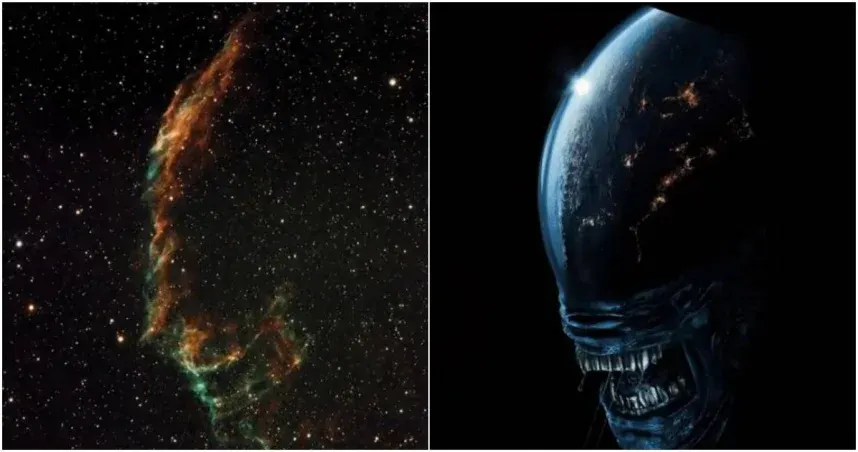 เดซี่ โดบริเยวิช บรรณาธิการของ Space.com สิ่งพิมพ์ออนไลน์ บังเอิญไปพบเห็นปรากฏการณ์ทางจักรวาลที่น่าประหลาดใจระหว่างการสำรวจภาพถ่ายดาราศาสตร์ ขณะกำลังเล็งกล้องโทรทรรศน์ ของเธอไปยังเนบิวลา Veil ทางทิศตะวันออก เธอเห็นเงาประหลาดคล้ายกับ Xenomorph สัตว์ประหลาดในจินตนาการจากภาพยนตร์คลาสสิก