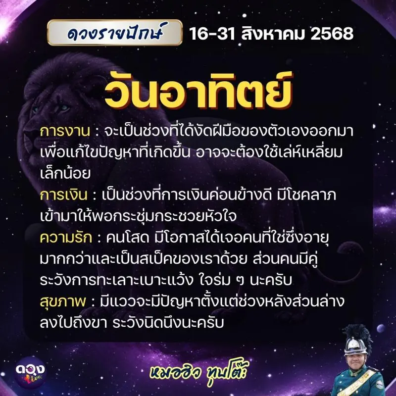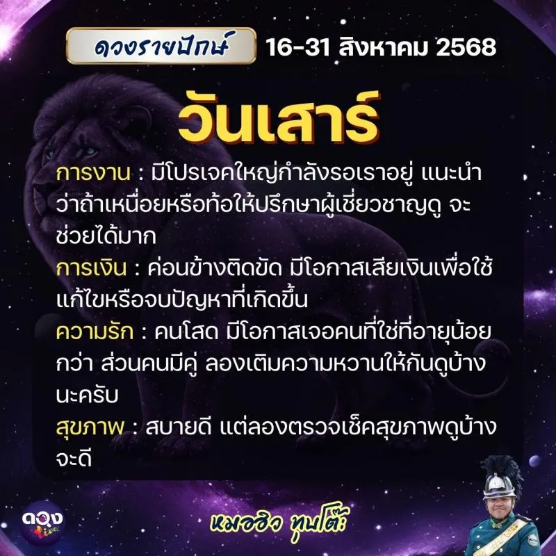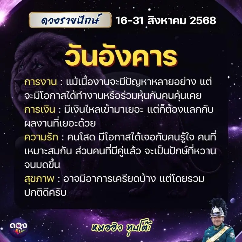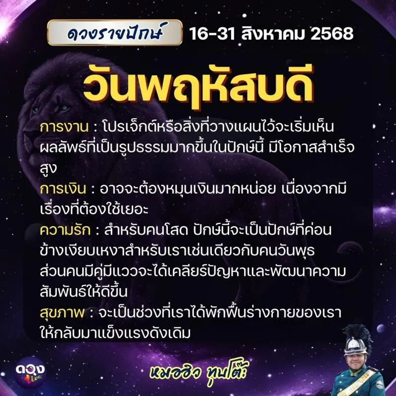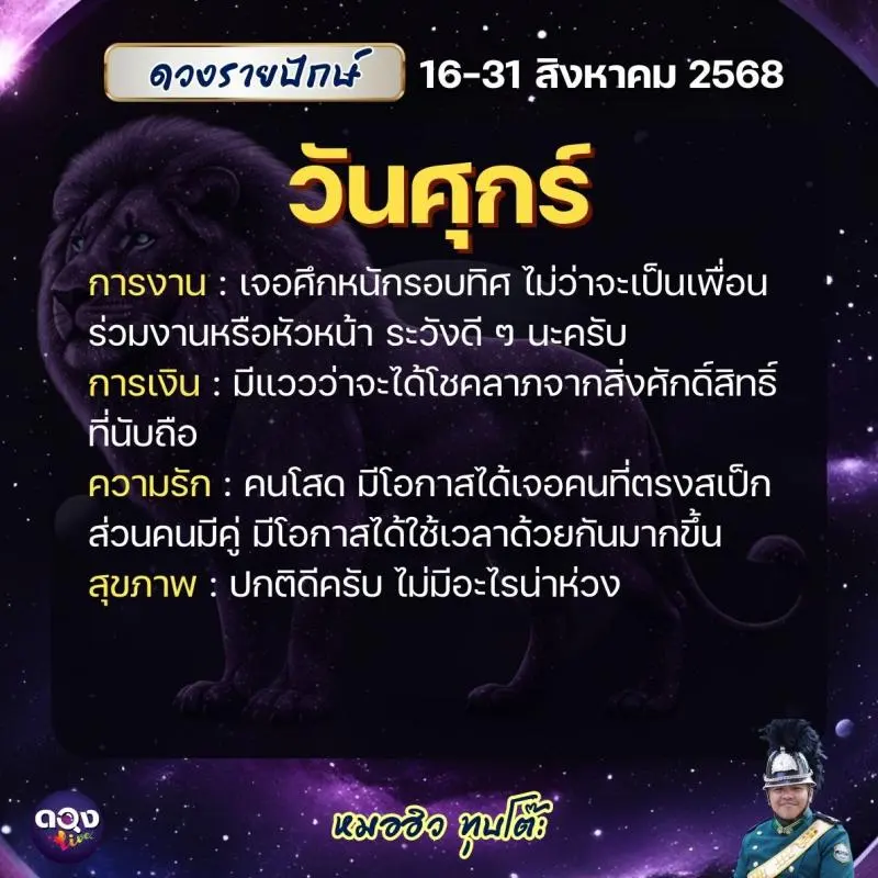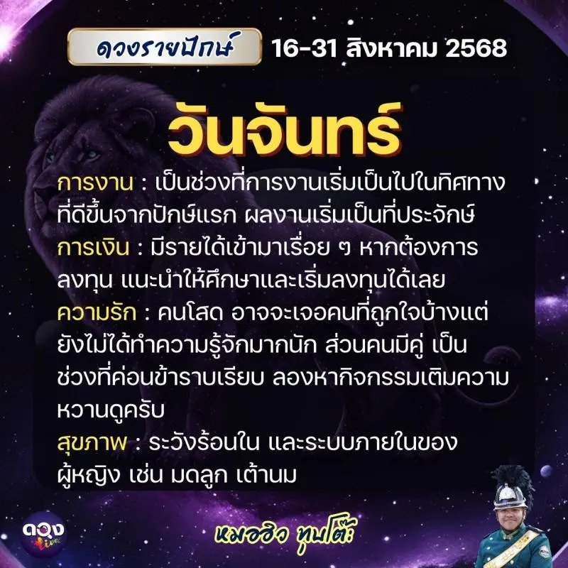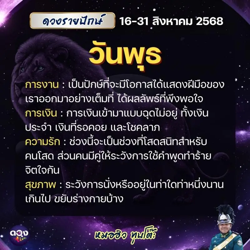 ดวงรายปักษ์ประจำวันที่ 16 – 31 สิงหาคม 2568 โดย หมอฮิว ทุบโต๊ะ