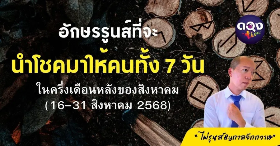 อักษรรูนส์ที่จะนำโชคมาให้คนทั้ง 7 วัน ในครึ่งเดือนหลังของสิงหาคม (16–31 สิงหาคม 2568) ไพ่รูนส์ By กาลจักกวาฬ