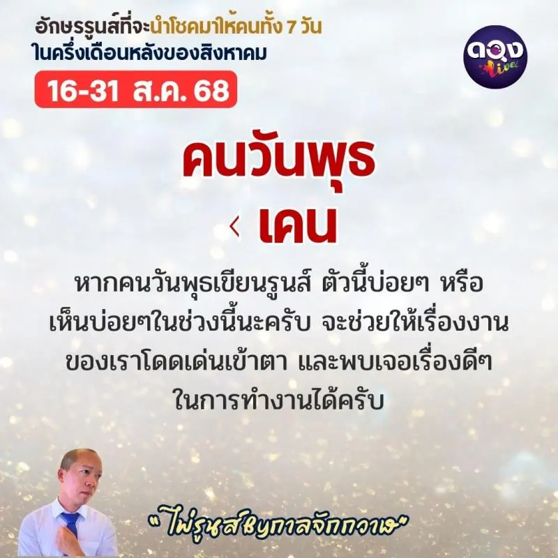 ᚲ – เคน หากคนวันพุธเขียนรูนส์ตัวนี้บ่อยๆ หรือเห็นบ่อยๆ ในช่วงนี้ จะช่วยให้เรื่องงานของเราโดดเด่น เข้าตา และพบเจอเรื่องดีๆ ในการทำงานได้ครับ