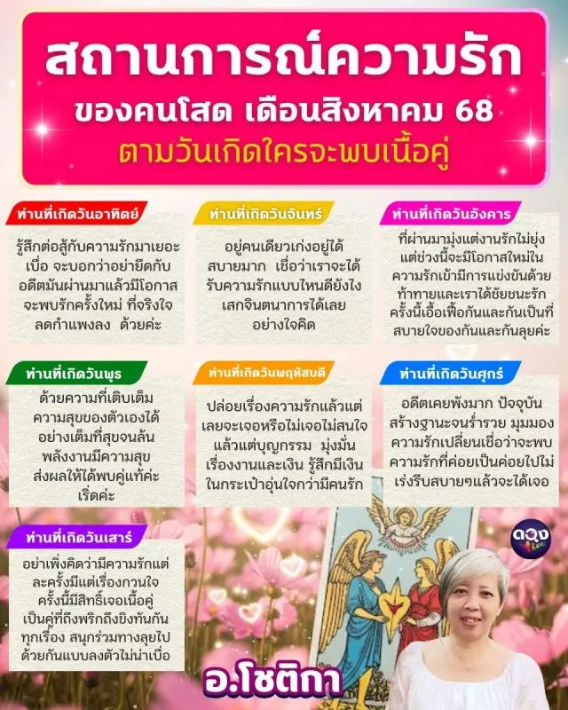 สถานการณ์ความรักของคนโสด เดือนสิงหาคม 2568 โดย อ.โชติกา
